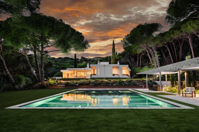 En el nivel inferior se sitúa un garaje para tres vehículos y un apartamento independiente para el servicio o los invitados. La parcela de más de 15.000 metros cuadrados refuerza el carácter exclusivo de la propiedad. Según Sotheby’s International Realty, el jardín alberga diversas zonas de descanso y ocio, incluyendo una piscina, pista de tenis, estanque, huerto y espacios de juego para niños.