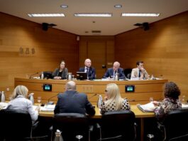 La mesa de la comisión de la dana de Les Corts...